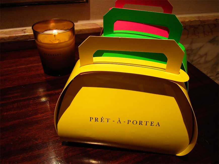 Auf meinem letzten London-Trip führte uns meine Freundin ins Berkeley Hotel. Hier bekommt man Prêt-à-Porter-Süßigkeiten zum Tee serviert. Natürlich alles up to date und in den angesagten Modefarben der Saison. Schließlich möchte man ja keine Kekse von vorgestern essen.